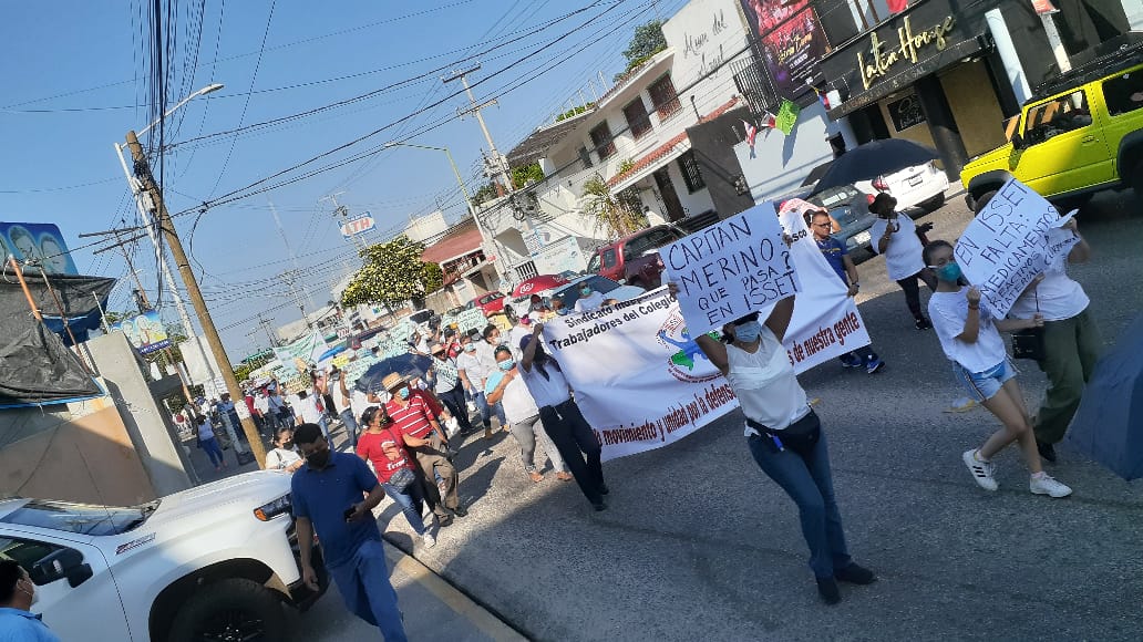 También entre las consignas lanzadas por los inconformes está el tema de desabasto de medicamentos, por lo que el siguiente punto a visitar fue el Palacio de Gobierno, en donde una comitiva entró a las oficinas para hace frente al llamado “fuera Mayans”, allí los representantes de los sindicatos comentaron que entre los punto a tratar está el tema Jubilaciones, pensiones y demás servicios que se han visto mermados desde la actual administración que encabeza el director del ISSET, Fernando Enrique Mayans Canabal.