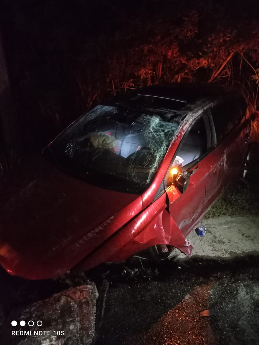 Por circular a exceso de velocidad, de repente perdió el control y terminó estrellado en el muro de contención de la carretera.