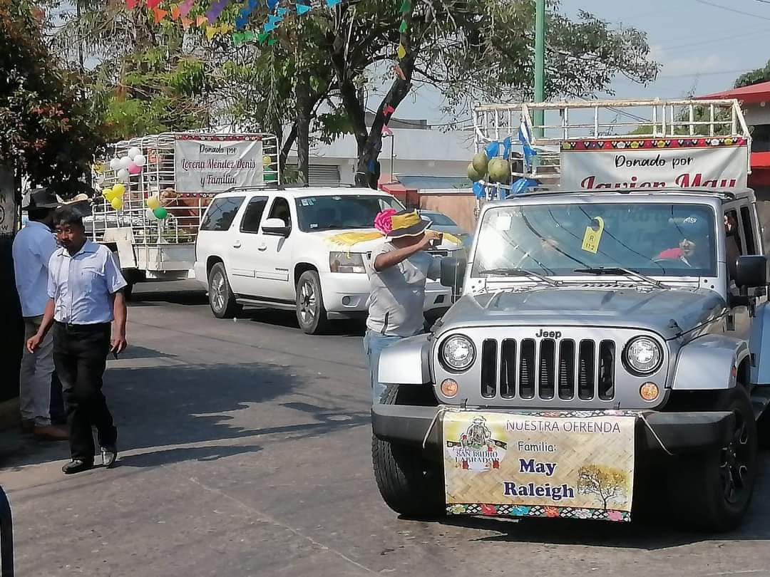 A la par de él, su ex pareja sentimental y actual diputada federal Lorena Méndez Denis hizo lo mismo, exhibiendo entre ambos vehículos valuados en más de 2 millones de pesos, mediante los cuales entregaron ofrendas de ganado vacuno de registro a la parroquia municipal.