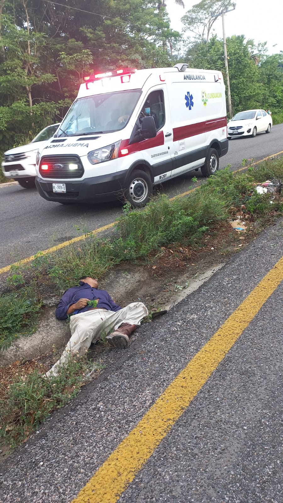 Un hombre que circulaba en su moto por la vía corta a Cunduacán fue atropellado por un auto desconocido; del golpe perdió la vida instantáneamente.