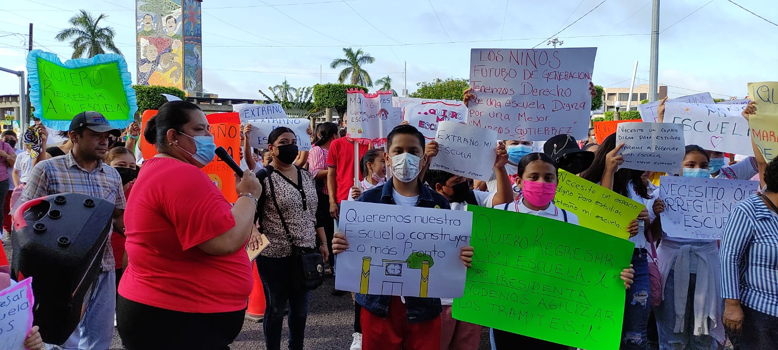 Los niños, muy molestos, con pancartas y lonas, gritaron consignas contra el gobierno municipal, cuyos funcionarios “lentos”, después de una hora de manifestación, recibieron una comisión de padres de familia para atender el problema.