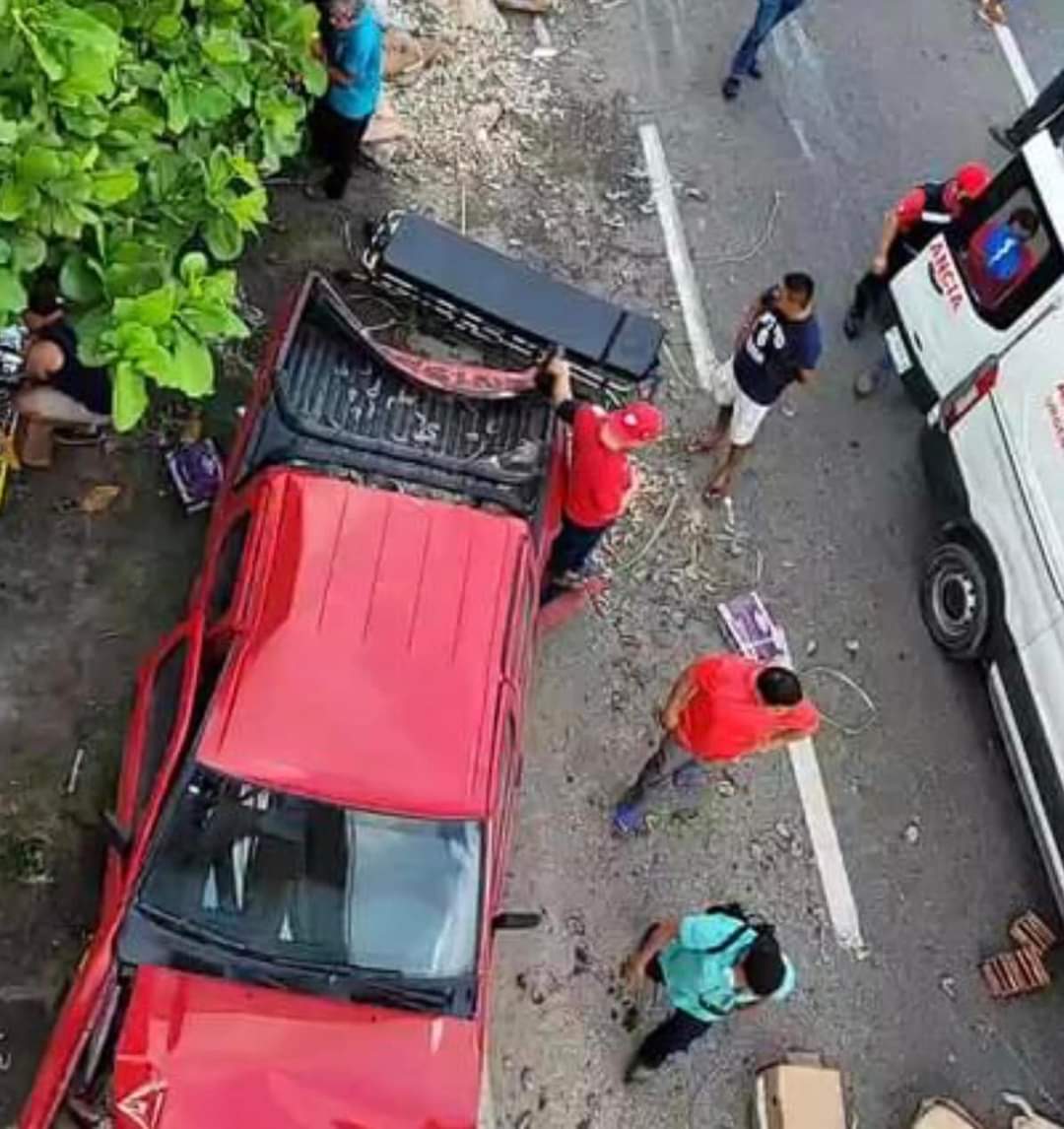 Asaltados por “rapiñeros” terminaron trabajadores de una empresa distribuidora de pescados y mariscos, luego de accidentarse contra otro vehículo sobre la carretera que conduce de Paraíso al municipio de Comalcalco.
