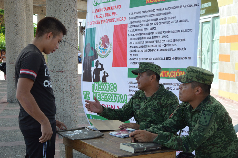 Las obligaciones que pide la Sedena a los jóvenes que buscan integrarse al ejército son, entre otros, ser soltero y no vivir en concubinato, tener 18 años cumplidos y no más de 29, ser mexicano de nacimiento y contar con cartilla del servicio militar. Además, deben mostrar su acta de nacimiento certificada, CURP, RFC, credencial de elector, estar sano clínica y psicológicamente y contar con una altura mínima de 1.63 centímetros, para ser aceptados como soldados del 57 Batallón de Infantería.