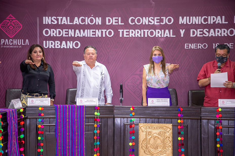 Con la participación de dependencias de los tres órde­nes de gobierno, colegios de profesionistas, instituciones académicas y organismos empresariales, fue instalado el Consejo Mu­nicipal de Ordenamiento Te­rritorial y Desarrollo Urbano de Tapachula, presidido por la alcaldesa Rosa Irene Urbi­na Castañeda.