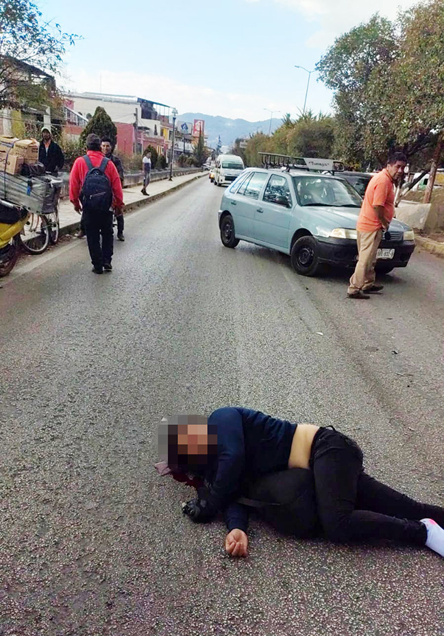 De gravedad fue trasladada al hospital una jovencita, luego de haber caído de su motocicleta tras haber sido aventada por el conductor de un vehículo, el cual se dio a la fuga. El hecho se dio alrededor de las 16:10 horas de este miércoles sobre el boulevard Juan Sabines o carretera internacional San Cristóbal-Comitán, a la altura del barrio de San Diego, casi esquina con la calle Dr. Pacheco Luna. De acuerdo a las versiones de los curiosos, la joven circulaba, pero en un descuido se pegó a un vehículo y por alcance cayó, y tras la caída, por el golpe que se dio en la cabeza por no portar el casco terminó ensangrentada y con fractura craneal.