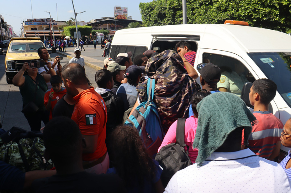 Un grupo de migrantes, subió presuntamente por la fuerza a una de las furgonetas del Instituto Nacional de Migración (INM), para que sean atendidos por el escaso personal que llega a verificar los documentos para que los trasladen a la estación migratoria siglo 21 y determinar su situación en el país. Los migrantes rodearon la unidad, se dieron empujones y gritos verbales, para intentar subir a la unidad, sin embargo, el oficial que estaba al interior de la furgoneta con los migrantes, les pedía sus cedulas o identificación.