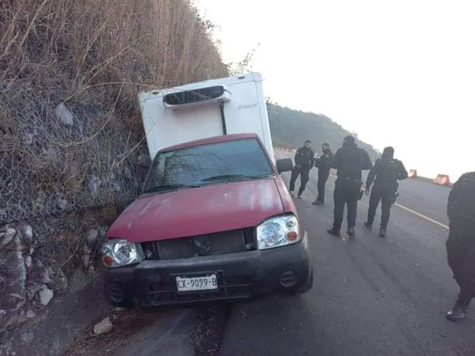 El reporte se dio alrededor de las 6:25 horas, mediante el cual se informó que a la altura del kilómetro 20+500, al interior de un vehículo con placas CX-9099B-, marca Nissan, cabina color roja con caja color blanca, se encontraba una persona sin vida, quién presentaban impactos de arma de fuego.