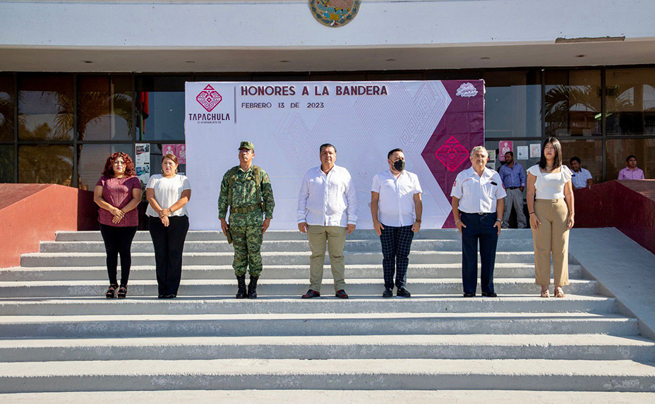 En el marco de la ceremonia cívica de honores a la bandera, el secretario General del Ayuntamiento, Roberto Fuentes Thomas, afirmó que se fortalecen las virtudes cívicas entre los niños, jóvenes y ciudadanos. Dijo que, en el marco del mes del amor y la amistad, el gobierno que encabeza la presidenta Rosa Irene Urbina Castañeda, realiza una serie de actividades que enaltecen la armonía, la unidad, la solidaridad, generosidad y fraternidad entre los tapachultecos. En ese sentido, afirmó que los adornos emblemáticos en el Sendero Peatonal, el parque Bicentenario y otros espacios públicos, permiten seguir construyendo en unidad de pueblo y gobierno, el nuevo Tapachula de armonía y desarrollo. Hizo una remembranza de las fechas conmemorativas del mes de febrero, estableciendo que el 19 se celebra el 110 aniversario de la fundación del Ejército Mexicano, “una institución de paz que ha estado presente en la atención a los desastres naturales, en la emergencia sanitaria por el Covid-19 y hoy sigue siendo un soporte de la transformación que está en marcha en nuestro país”.