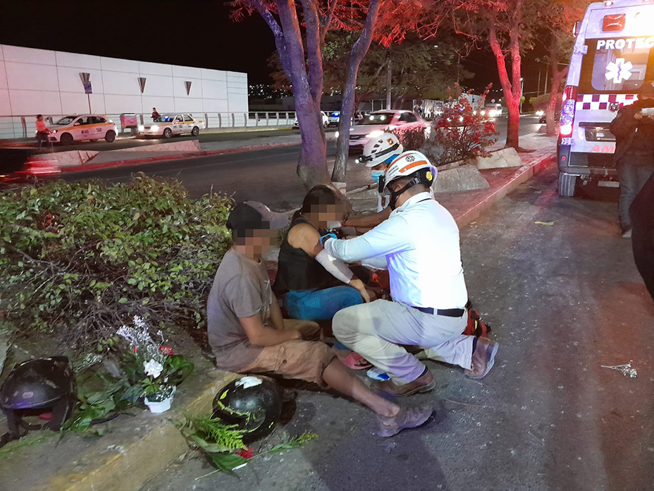 En las últimas horas del sábado una pareja que se desplazaba a bordo de una motocicleta terminó siendo aten­dida por paramédicos, luego de estre­llarse contra un colectivo foráneo en la zona oriente de ésta ciudad capital. Esto ocurrió alrededor de las 20:45 horas sobre el carril que va en el sentido de poniente a oriente del bulevar Ángel Albino Corzo, a la altura de “Plaza Poliforum” de Tuxtla Gutiérrez.