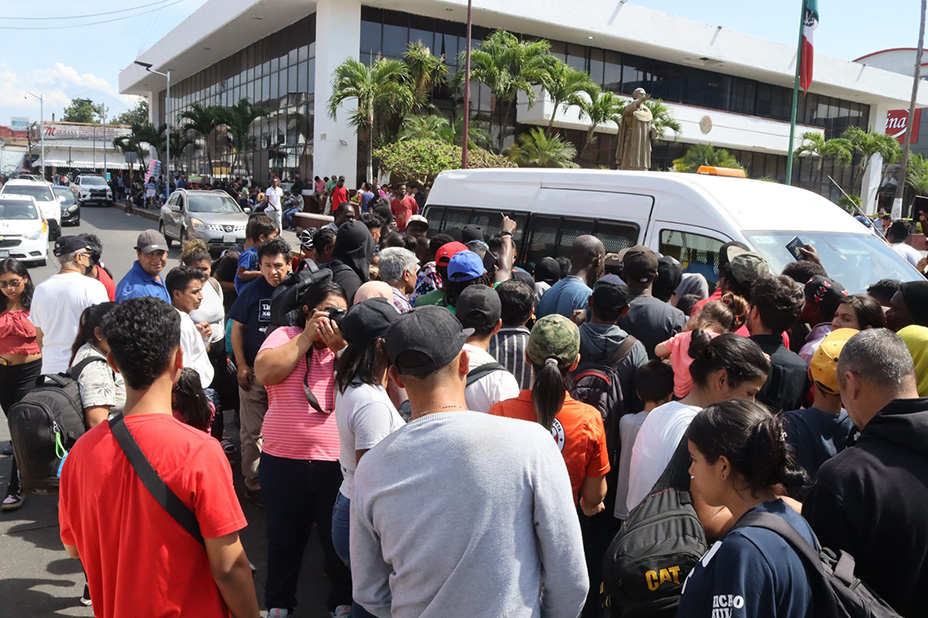 Ayer martes, decenas de migrantes africanos, del medio oriente, haitianos y de Venezuela, se concentraron en el parque central Miguel Hidalgo en espera de la unidad del Instituto Nacional de Migración (INM), para entregarse de manera voluntaria y poder acceder al proceso migratorio y les puedan otorgar un oficio de salida para dar seguimiento a sus documentos en Tapachula. Fue alrededor de las 11:00 de la mañana, que arribo el personal del grupo beta a bordo de una camioneta y una furgoneta de migración para tratar de atender a los migrantes de dichos países que empezaron a ubicar a la unidad.