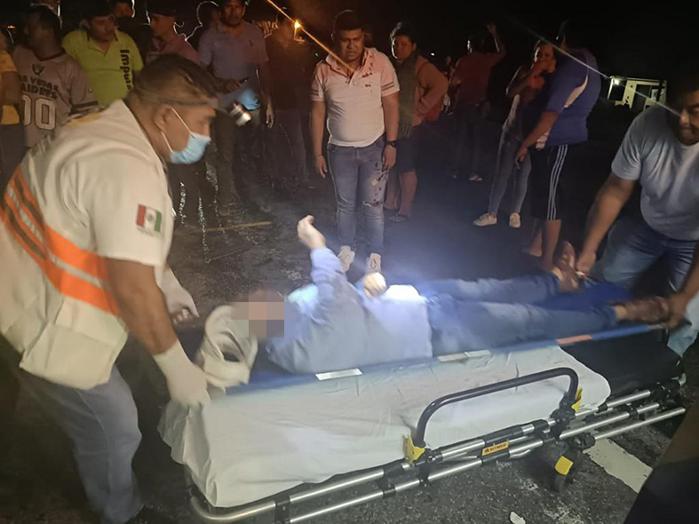 En el percance sufrieron lesiones Guadalupe, de 30 años, quien resultó con fractura de clavícula y esguince cervical; Mauricio, de 18 años, quien sufrió una fractura en el brazo izquierdo, herida en el cráneo, además de múltiples golpes, y, el último lesionado fue Sary, de 30 años, con 16 semanas de embarazo, quien resultó con golpes y crisis nerviosa. Los lesionados fueron trasladados a bordo de la ambulancia al Hospital General de Palenque, donde quedaron internados.