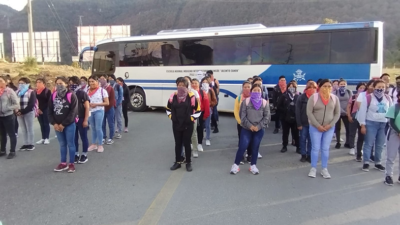 Después de las 5 de la tarde de este lunes un grupo de aproximadamente 100 estudiantes de la Escuela Normal Intercultural Bilingüe Jacinto Canek procedentes del municipio de Zinacantán, se manifestaron sobre el tramo carretero San Cristóbal-Tuxtla Gutiérrez a la altura del kilómetro 46 quienes están exigiendo el pago de combustible a tres unidades autobuses de esta institución.