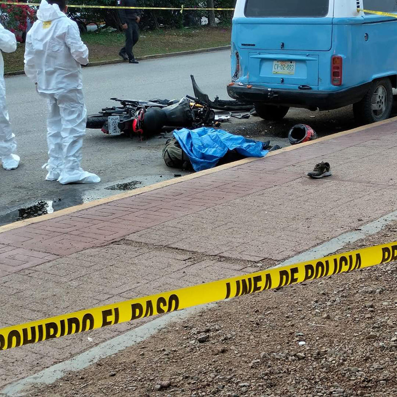 Por lo fuerte del impacto, el motociclista se impactó en la parte posterior de una Combi que estaba estacionada justo frente al acceso principal de la Prepa Comitán, donde recibió severos golpes que le arrebata­ron la vida de manera instantá­nea, a pesar de que paramédi­cos de Protección Civil llegaron de manera rápida.