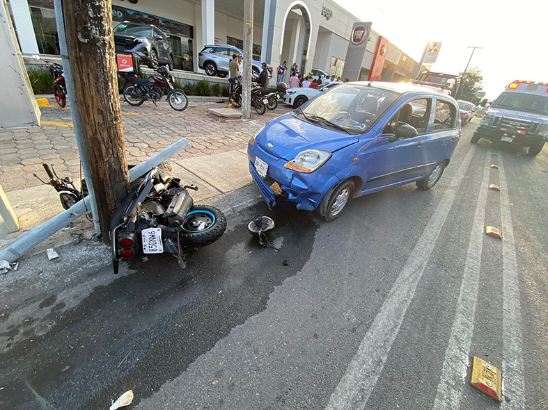 Al llegar a la 13 calle Poniente se le atravesó una camioneta Ford, de color azul, con placas del estado de Chiapas, ocasionándose el accidente.