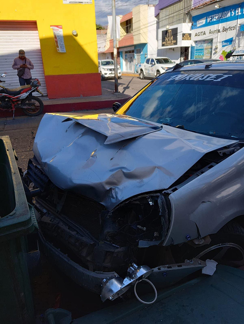 Mientras que en la otra unidad viajaban Esdras “N”, de 20 años, quien iba acompañado de dos menores de edad, uno de 13 y el otro de 17 años, quienes también resultaron con algunos golpes. Las autoridades de emergencia informaron que, a pesar de lo aparatoso del accidente, no fue necesario el traslado de los viajantes a una instancia médica, toda vez que únicamente tenían golpes leves que no ponían en riesgo su salud. En tanto que personal de la Policía Municipal se encargó de la prevención vehicular hasta que autoridades de Tránsito ordenaron el retiro de los dos automóviles para su resguardo en el corralón.