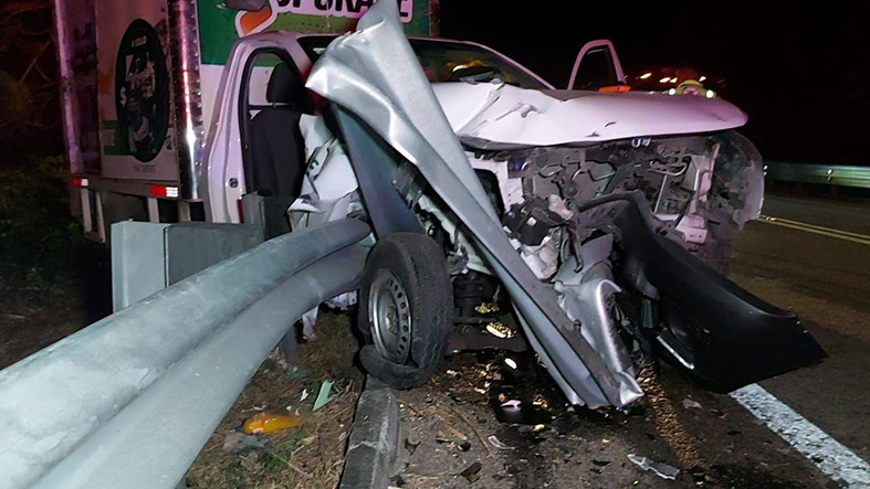 Una camioneta acabó destrozada de la parte delantera tras impactarse de frente contra la barra metálica lateral de la vía carretera que va de esta ciudad hacia Ocozocoautla, apenas en el kilómetro 3 de donde recién comienza la ruta.