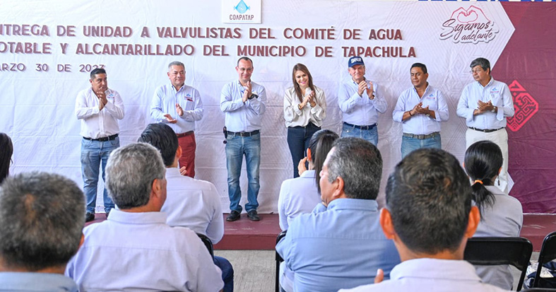 Al entregar una unidad al área de valvulistas del Comité de Agua Potable y Alcantarillado (COAPATAP), la presidenta municipal de Tapachula, Ro­sa Irene Urbina Castañeda, anunció una inversión de 34 MDP que serán destinados al mejoramiento del abasto de agua para los tapachultecos.