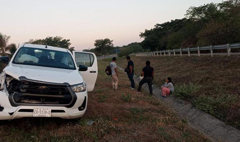 En el lugar localizaron una camioneta Toyota Hilux color blanca, con placas del estado de Chiapas, conducida por Samuel H., en la que viajaban Hernesto L. y Sulmi L. Las tres personas resultaron ilesas.