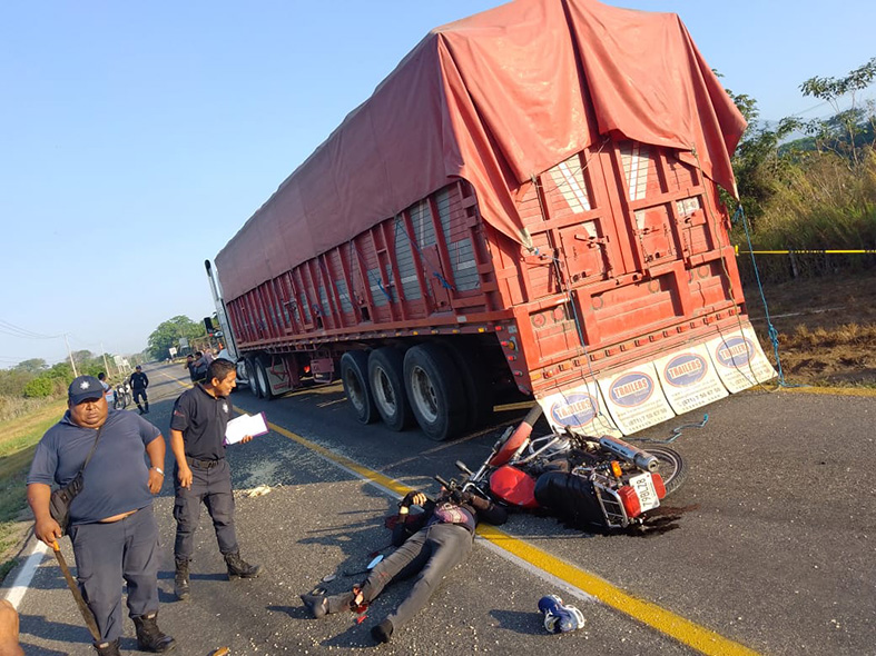 Un motociclista perdió la vida la mañana de este jueves, al chocar por alcance contra un camión torton en el tramo carretero Villa Comaltitlán-Huixtla.