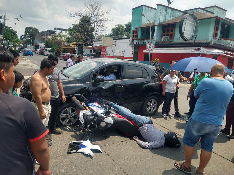 El conductor de la moto­cicleta se desplazaba de Sur a Norte sobre la novena ave­nida Sur, al llegar a la 20 calle Oriente se le atravesó el vehí­culo Chevrolet Trax, impac­tándose del lado izquierdo.