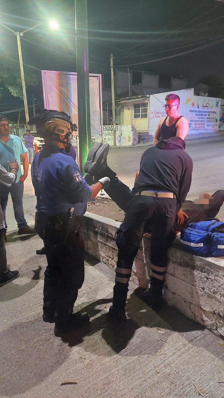 Posteriormente el joven salió proyectado, resultando con un gol­pe en sus genitales. Voluntarios del grupo GAECH se hicieron presen­tes para valorar al joven y descarta­ron el traslado a un hospital. Elementos de Tránsito Munici­pal llegaron al lugar y evaluaron los cuantiosos daños materiales. Las unidades no se remitieron al corralón porque se llegó a un acuer­do económico entre el motociclista y el conductor del vocho.