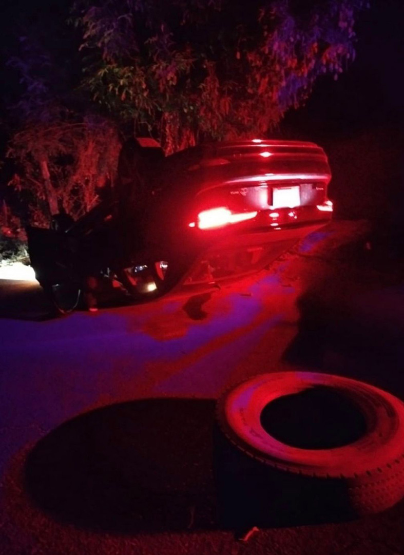 Un automóvil compacto terminó volcado en la vía que va de esta ciudad al municipio vecino de Villacorzo, donde se justo frente a la estación policíaca. El hecho ocurrió la madrugada de este jueves, cerca de las 03:20 horas en el cual se supo que el conductor del vehículo tipo jetta intentó librar unos neumáticos que estaban en el camino, situación que lo hizo perder el control del volante y terminar volcado.
