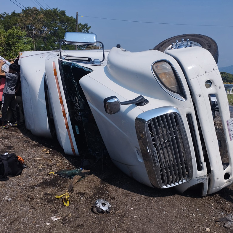 Elementos de la Policía Municipal Estatal preventiva y Guardia Nacional acudieron al lugar, quienes evitaron que las personas se robaran los rollos de manguera que transportaba. El vehículo marca Freightliner tipo tractocamión de color blanco, de la empresa Transportes Torres, con placas de circulación 74-A2-1S del Servicio Público Federal, era conducido por Benito “N”, de 50 años de edad, con domicilio en la Ciudad de México, quién resultó ileso.