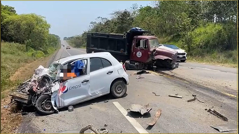 Al llegar encontraron dos unidades impactadas, un volteo perteneciente a la empresa de materiales de la construcción Mundo Maya placas 5-CNE-775 del estado de Chiapas, y un vehículo compacto Nissan tipo March color blanco, perteneciente a la empre­sa Pepsi, que se dirigía de Jonuta a Emiliano Zapata, Tabasco; con placas de cir­culación WVT-880-A, del estado de Tabasco.