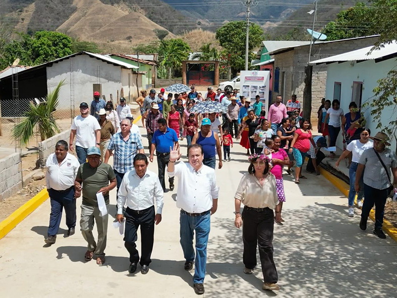 Acompañado por su esposa Margarita Sarmiento Tovilla, del comisariado ejidal Genaro Zavala Narcía, del agente municipal Humberto Zavala y del presidente de COPLADEM Eligio de la Cruz Hernández, hizo un recorrido por la calle pavimentada y escuchó algunas de las peticiones para seguir mejorando el aspecto de la comunidad.