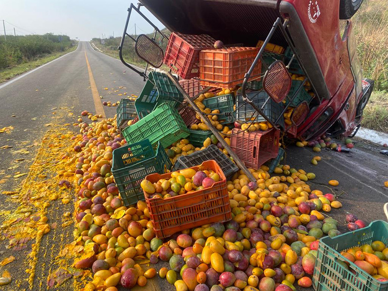 Un accidente carretero dejó volcada a una camioneta que transportaba mangos, en un hecho ocurrido en la vía que conecta a esta localidad con la comunidad de Cárdenas, en el kilómetro 65.