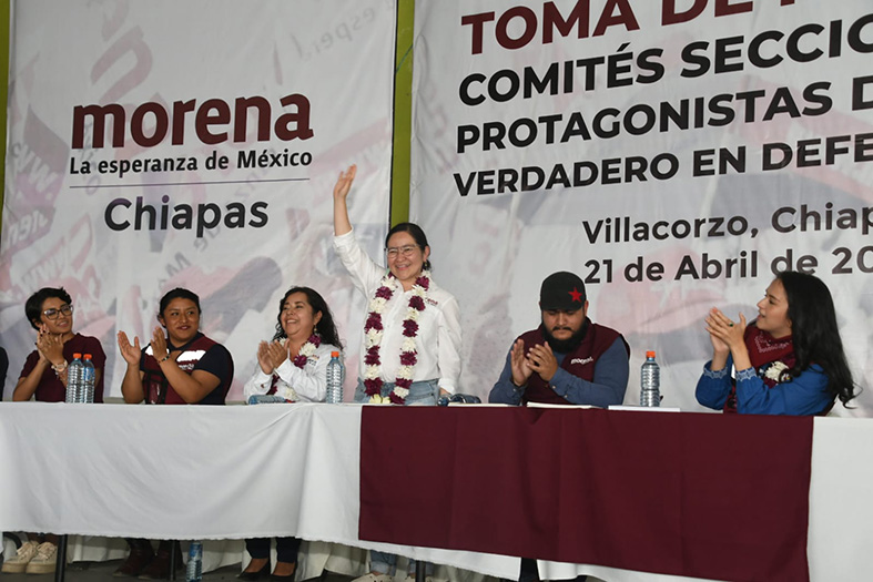 De acuerdo a los informes, la funcionaria de Morena- Chiapas, el pasado viernes, en el municipio de Villa Corzo, “tomaron protesta ante integrantes del Comité Ejecutivo Estatal, consejeros y consejeras estatales y nacionales los comités de defensa de la 4T”.