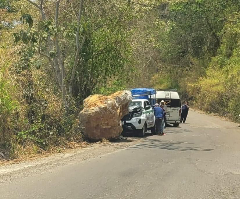 El chofer de la camioneta co­munitaria ya no pudo librar a la piedra tras salir de la curva, por lo que acabó impactándose de frente contra la roca, ocasionan­do múltiples daños a su unidad y provocando que algunos pasajeros resultaran con afectaciones. Personal de emergencia acu­dió a la zona del percance para revisar las condiciones en que es­taban los pasajeros y el chofer, en el cual se descartó cualquier lesión de gravedad, dejando en claro que no fue necesario su traslado a una instancia médica. Por su parte automovilistas afirmaron que esta piedra había caído hace algunos días, y que al­gunos habían colocado ramas para prevenir, pero al parecer el viento acabó llevándose dichas ramas, dejando a la deriva a quienes tran­sitan por este punto.