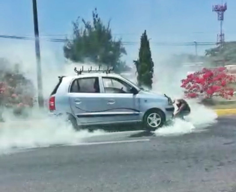 El incidente ocurrió al filo del mediodía, cuando un vehículo compacto tipo Atos circulaba sobre el carril que va de Sur a Norte del bulevar de Las Federaciones, pero al llegar al semáforo de “la entrada a Zapata”, su vehículo comenzó a incendiarse de la parte frontal.