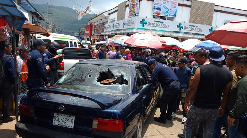 Elementos de la Dirección de Tránsito Municipal brindaron apoyo al conductor de un automóvil que fue agredido momentos antes del mediodía de este jueves por varias personas, que trascendió son seguidores de Enrique “N”, conocido como alias El Negrito Bimbo, líder del mercado José Castillo Tiélemans.