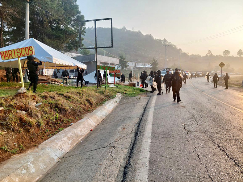 Elementos de la Secretaría de Seguridad y Protección Ciudadana (SSyPC) aplicaron el Protocolo para Restablecer el Orden y el Tránsito en la carretera federal número 190 en el municipio de Teopisca, la cual permanecía bloqueada por un grupo de personas.