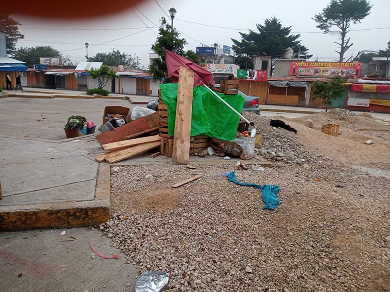 De acuerdo a las fotografías que se compartieron, rompieron lonas y tiraron mercancía de las comerciantes, desconociéndose el motivo, ya que se han acatado a las medidas y recomendaciones que les han hecho, como lo son, desocupar pasillos.