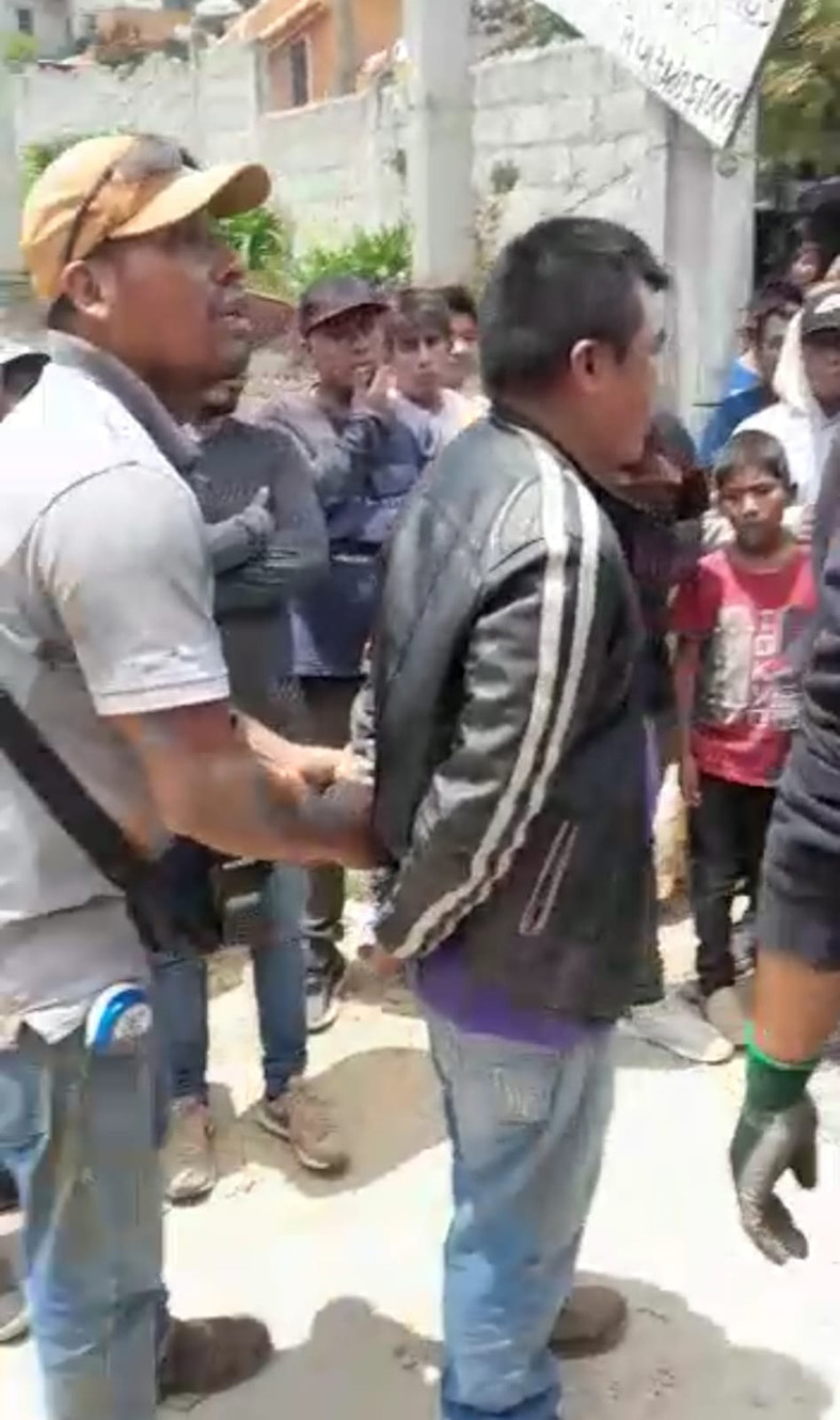 Después de las 15:30 horas aún no había presencia del Ejército, la Guardia Nacional, así como elementos de la policía estatal y municipal, mientras los dos sujetos se encuentran dentro de la cárcel de la comunidad, pero los habitantes han afirmado que no serán liberados, los familiares deberán pagar la multa fijada y tendrán que presentarse con las autoridades para establecer un diálogo.
