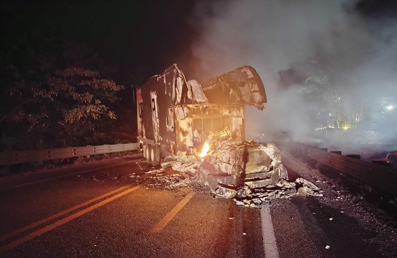 Cerca de las 05:00 horas se vivió una intensa movilización en el kilómetro 150 de la vía antes mencionada, a escasos kilómetros de donde se ubica el Puente Chiapas, esto debido a que sujetos armados habían interceptado un tráiler para colocarlo como bloqueo, mis­mo al que le prendieron fuego.