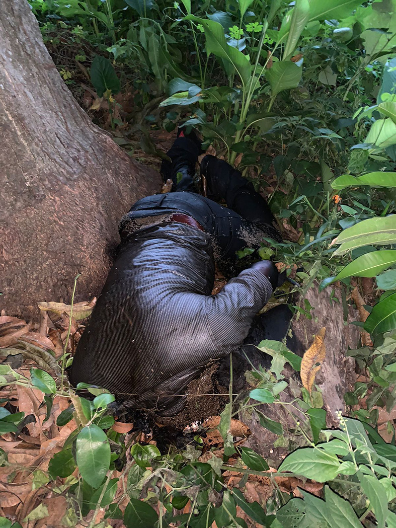 Una persona en avanzado estado de putrefacción fue localizada debajo de un árbol de mango de un predio Santa Teresa, que se ubica detrás del hospital general Manuel Velasco. Alrededor de las 18:30 horas de este lunes, reportaron al centro de emergencia c5, que el cuerpo de una persona en avanzado estado de putrefacción, en la raíz de un árbol, presuntamente se había colgado con un cinturón en un árbol de mango, había sido localizado por trabajadores del rancho Santa Teresa. Las autoridades se trasladaron sobre la carretera Tapachula – Puerto Madero e ingresaron por el hospital general Manuel Velasco Suárez, para trasladarse al rancho Santa Teresa en un predio, se encontraba el cuerpo que se presume que se había colgado con un cinturón pero se rompió.