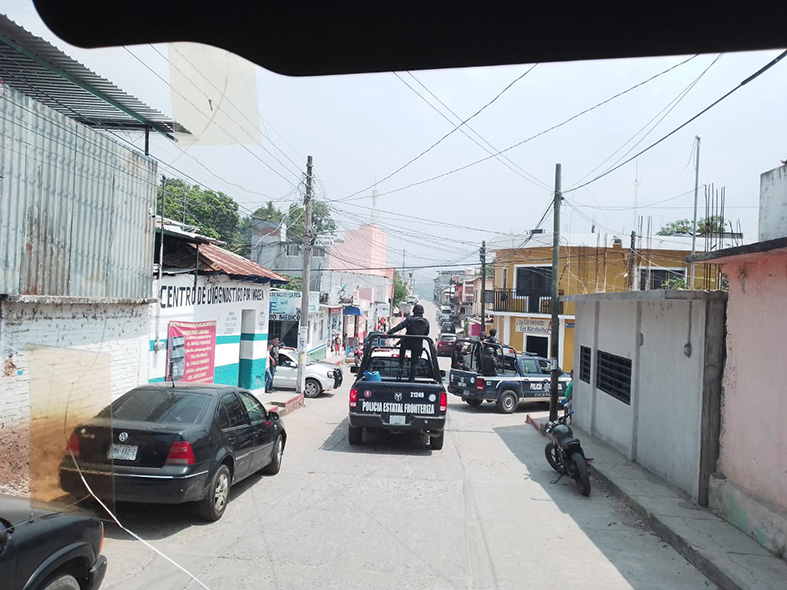 Las fuentes consultadas señalaron que luego del enfrentamiento con un grupo de campesinos en el poblado Joaquín Miguel Gutiérrez, los uniformados han logrado avanzar hasta la cabecera municipal de Frontera Comalapa, realizando patrullajes preventivos, filtros de inspección a entradas y salidas, así como en colonias del municipio.