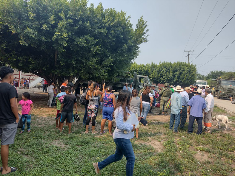 Por lo menos 600 habitantes fueron trasladados en camiones por la Sedena y la Guardia Nacional; otras 200, en su mayoría hombres, lo hicieron a caballo