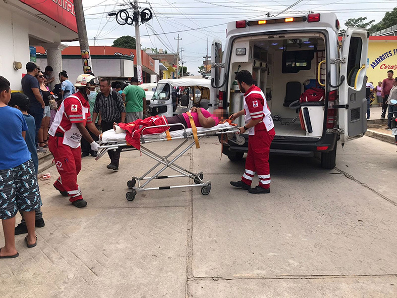 Paramédicos de la Cruz Roja Mexicana y de Protección Civil le brindaron los primeros auxilios a la mujer identificada con el nombre de María “N”, misma que presentaba lesiones en el pie izquierdo, además de otros golpes en el cuerpo.