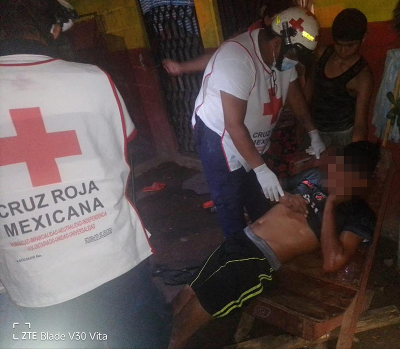 La unidad 189 de la Cruz Roja Mexicana, acudió al lugar, donde se dio a conocer que el balazo pasó cerca de la cabeza y rozó el cuero cabelludo, mismo que será trasladado al hospital general Manuel Velasco Suárez de Tapachula.