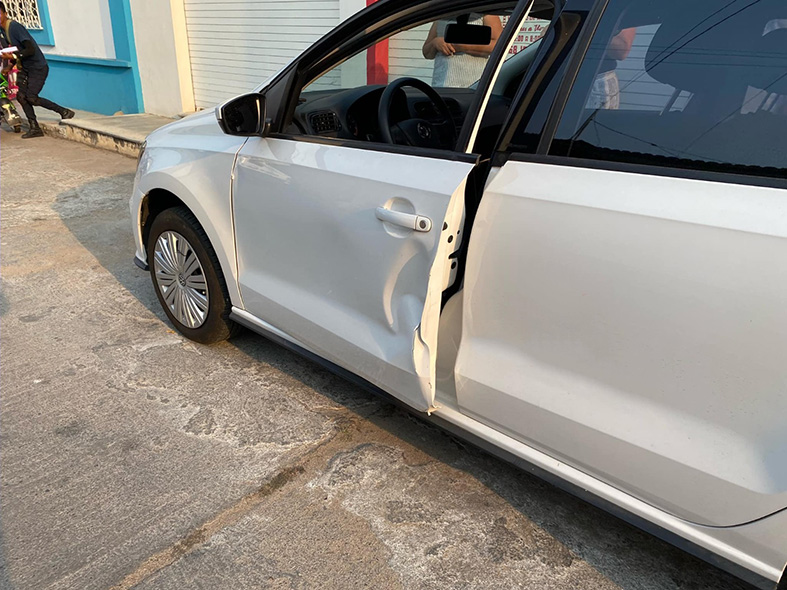 Se sabe que el chofer del automóvil tipo Vento de la marca Volkswagen recién acababa de estacionarse y se disponía a descender, por ello abrió la puerta de su coche sin percatarse que venía la motocicleta, por lo que tras el impacto, las dos personas que venían en el caballo de acero acabaron tendidos sobre la vía pública.