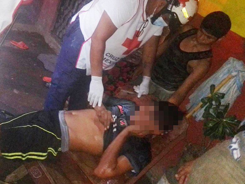 Con el apoyo de habitantes del ejido lo llevaron a su domicilio y solicitaron la intervención del personal de la Cruz Roja Mexicana y de las diferentes corporaciones Policiacas.