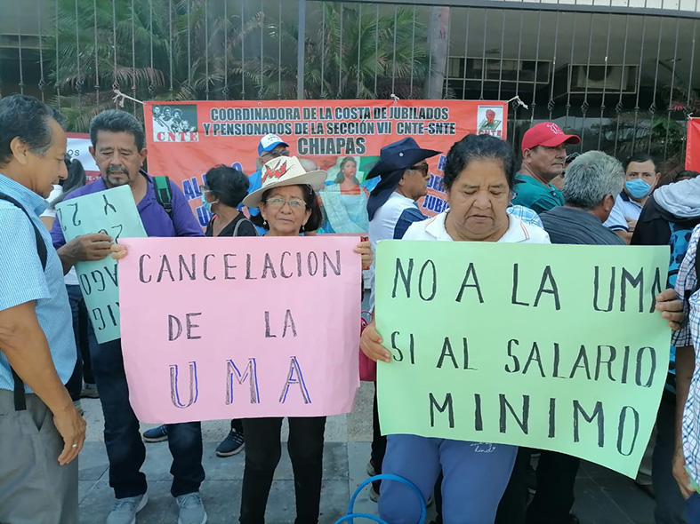 Decenas de jubilados y pensionados de distintas regiones de Chiapas, adheridos a la Sección 7 del Sindicato y Coordinadora Nacional de Trabajadores (SNTE-CNTE), realizaron una protesta en el centro Tuxtla Gutiérrez, para exigir que se les pague los bonos anuales retroactivos, pendientes desde el año 2018.