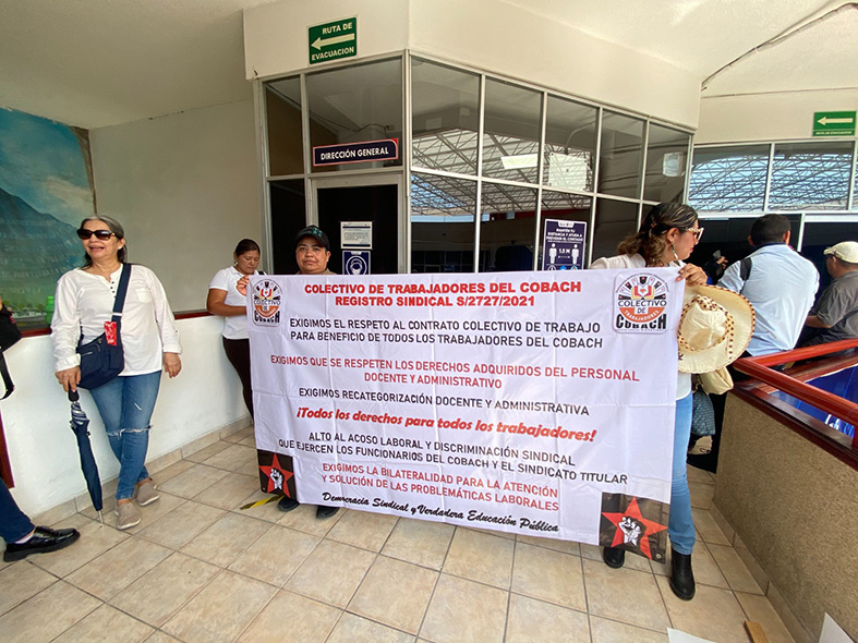 Trabajadores del Colegio de Bachilleres de Chiapas (COBACH) se manifestaron la mañana de ayer en las oficinas de la Dirección General de esa institución educativa ubicada en la colonia Las Palmas al oriente de la capital chiapaneca.