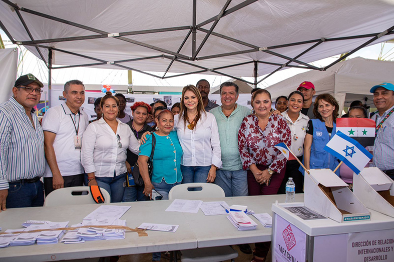 La presidenta municipal resaltó que los gobiernos del presidente Andrés Manuel López Obrador y del gobernador, Rutilio Escandón Cadenas “se han distinguido por su humanismo, por la defensa de los derechos humanos y por generar acciones para brindar seguridad y atención integral a toda la población en movilidad”, por ello Tapachula es una de las ciudades que recibe el mayor número de solicitudes de refugio en el mundo.