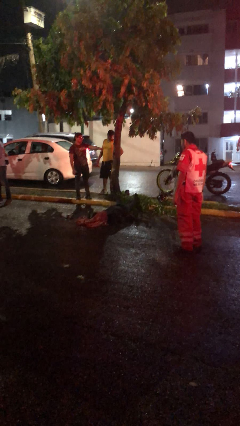 El joven viajaba a bordo de su caballo de acero en el carril de poniente a oriente, pero el piso mojado y el exceso de velocidad fueron las causas de que perdiera el control de su caballo de acero impactando el árbol y salió proyectado, al caer recibió un fuerte golpe en la cabeza.