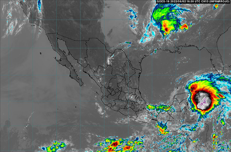 Este Servicio de la Comisión Nacional del Agua (Conagua) advierte que serán sus bandas nubosas las que producirán lluvias de muy fuertes a puntuales torrenciales en Chiapas, estas serán acentuadas en las regiones costeras, con la presencia de vientos fuertes y oleaje elevado.